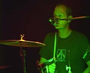Rob multi-tasks: did someone leave the drummer's mic on again?